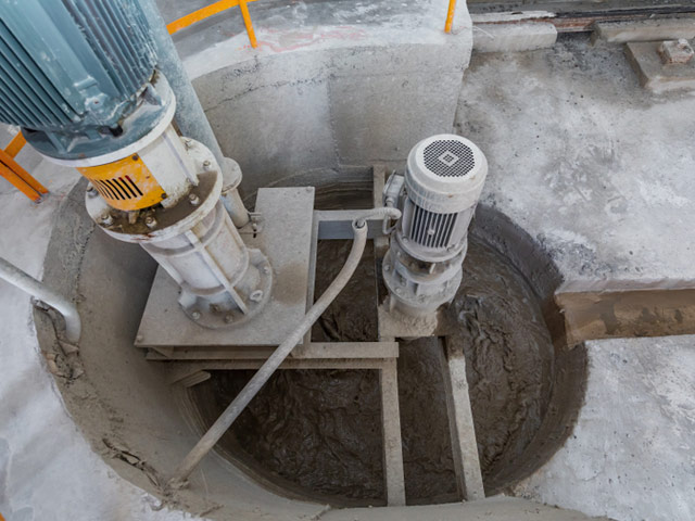 Ada kumpulan bubur transisi di sebelah tangki penyimpanan bubur, dengan dua fungsi: satu adalah untuk memompa bubur ke area batching, yang lain adalah membuat koneksi dengan setiap tangki tunggal.