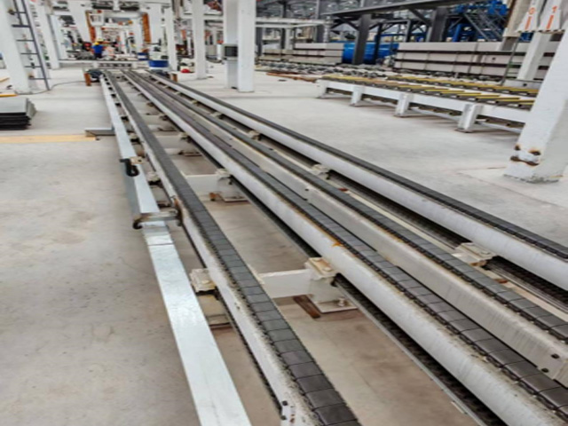 Jalur konveyor produk jadi digunakan untuk pengangkutan blok di bagian pengemasan. Sebagai konveyor rantai, ia dilengkapi dengan perangkat penggabungan tumpukan, dan bekerja bersama dengan hoist penjepit produk jadi dan mesin pengikat otomatis untuk mengemas blok AAC.