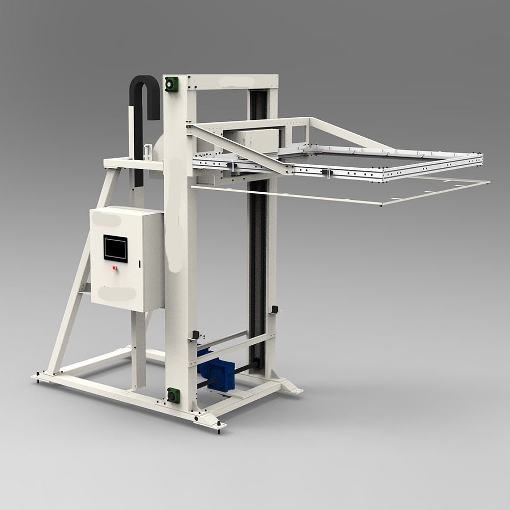 Kontrol cerdas, setelah mulai bekerja, fixture rotating menjepit seluruh tumpukan blok, menempatkan bagian dari masing -masing tumpukan blok pada garis ekstraksi dan rotasi, fixture ekstraksi bata mengekstrak beberapa blok pada jalur pengangkutan ekstraksi bata dan menempatkannya pada lini pengangkutan kemasan produk akhir; Perlengkapan yang berputar menempatkan bagian lain pada jalur pengemasan produk akhir, dan menumpuknya bersama -sama dengan bagian blok yang telah diekstraksi untuk membentuk tumpukan blok dengan lubang garpu. Fungsi utama baler adalah untuk secara vertikal menggabungkan tumpukan blok di arah longitudinal dan melintang untuk menyelesaikan proses pengemasan blok yang bebas palet.